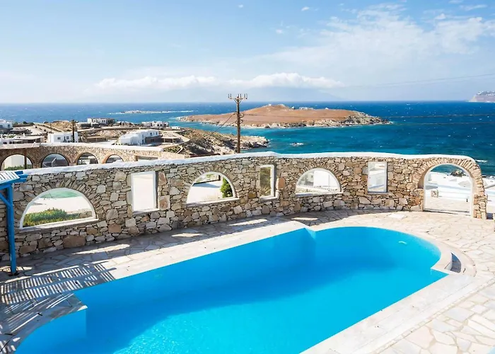 Cavo Alefkandra 5 Ornos villa is gesitueerd binnen 10 minuten rjden vanaf het Agios Stefanos-strand en biedt toegang tot bezienswaardigheden in de omgeving.